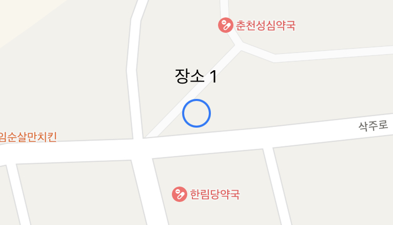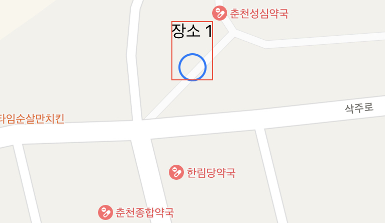 MapMarker를 사용해 나타낸 우측 사진과 비교하면, 위치가 정확하지 않은 것을 볼 수 있다.